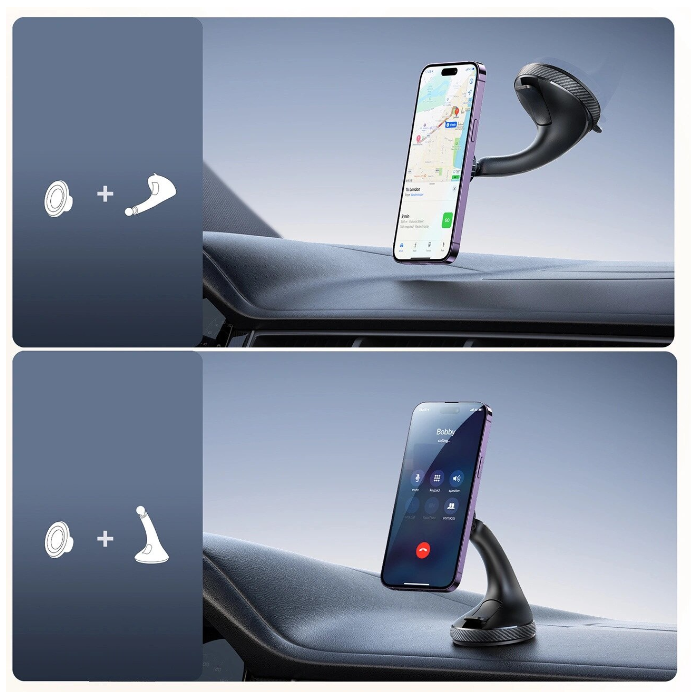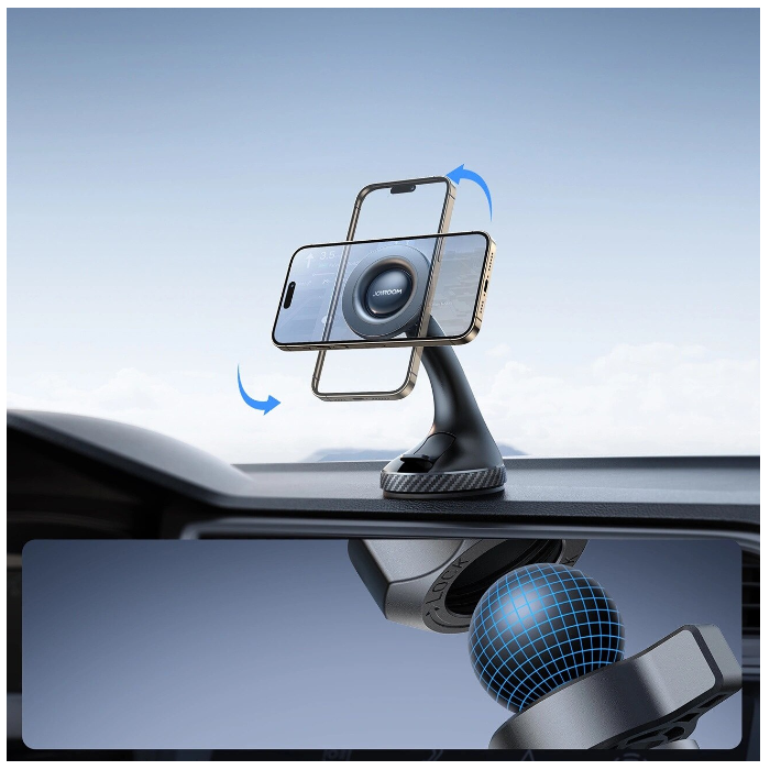 Ai telefon scump, dar il lasi sa se dea cu capul de bord la fiecare frana? Hai sa nu fim asa. Suport auto magnetic Joyroom JR-ZS406 vine cu o ventuza care prinde atat de bine incat ai impresia ca s-a nascut acolo.